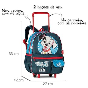 O kit escolar 101 Dálmatas é a escolha perfeita para quem quer voltar às aulas com muito estilo e praticidade. A mochila de carrinho DL27035 é superversátil: pode ser Utilizado no carrinho, com rodinhas resistentes, puxador em alumínio e base frontal de apoio, ou nas costas, graças às alças acolchoadas e ajustáveis. Seu design encantador traz o personagem em pelúcia com detalhes bordados, além de puxadores de zíper personalizados. Possui compartimento principal amplo, dois bolsos frontais para organização e bolsos laterais telados para garrafinhas. Acompanha a lancheira térmica DL27037, confeccionada em poliéster com o personagem em pelúcia, detalhes bordados e acabamento incrível. Seu interior térmico mantém os alimentos conservados por mais tempo, e os dois compartimentos separados com zíper facilitam a organização. Conta ainda com alça de mão, alça carona para acoplar em malas ou carrinhos e alças de costas ajustáveis para mais praticidade. Dimensões aproximadas: Mochila: 33x27x12cm Lancheira: 24x17x10cm Marca: Não Informado