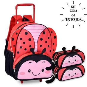 Agora o kit das mochilas de bichinhos vem com 2 estojos clio pets, ideais para trazer organização e um toque de fofura extra use um estojo para lápis e canetas e o outro para acessórios, deixando tudo no seu lugar com os dois compartimentos espaçosos. Os puxadores em formato de patinhas tornam cada estojo único e encantador, combinando com o visual das mochilas. E o melhor Ao adquirir o kit, você garante os dois estojos por um preço super especial, quase de custo. Dimensões aproximadas: 21x9x6 cm. Kit mochila de carrinho + um mimo: dois estojo duplo Design lúdico e encantador: estampas divertidas de borboleta, joaninha e abelinha com asinhas em destaque, perfeito para estimular a imaginação das crianças. Materiais de qualidade: mochila e lancheira confeccionadas em poliéster resistente, com frente em silk e detalhes em pvc. Mochila de carrinho: - duas rodinhas traseiras que facilitam o transporte e base frontal para manter a mochila em pé. - alças ajustáveis e confortáveis para uso nas costas quando necessário. - compartimento principal espaçoso e bolso frontal, ambos com fechamento em zíper. - puxadores de zíper personalizados em formato de patinhas. - dimensões aproximadas: 38x30x12cm - dimensões aproximadas estojo: 21x9x6 cm. - perfeito para o dia a dia: cores vibrantes e temas divertidos que tornam a volta às aulas ainda mais alegre e especial. Esse kit é a escolha ideal para pais que buscam unir praticidade, beleza e funcionalidade em um só produto