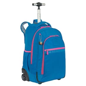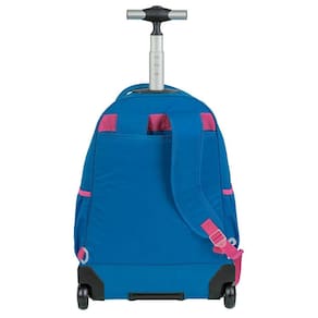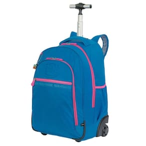 A Mochila Carrinho 2 Compartimentos Paul Frank T03 - Aquamarine é azul e possui um tamanho grande, proporcionando espaço suficiente para você levar tudo o que precisa. Seja para a escola, viagens ou passeios, essa mochila é a escolha perfeita.
