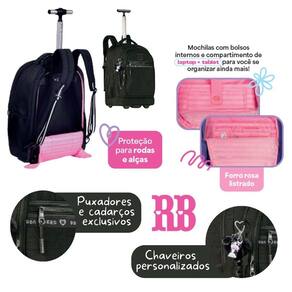 A Mochila de Carrinho Rebecca Bonbon RB27000 é o modelo perfeito para quem ama estilo e praticidade no mesmo produto. Feita em nylon resistente com matelassê de estrelinhas e corações, ela tem aquele visual moderno e super fashion. O compartimento principal é bem espaçoso e ainda vem com divisórias acolchoadas para notebook e tablet. Na frente, são quatro bolsos com zíper, sendo um deles organizador interno, além de bolsos laterais em tela para garrafinha ou acessórios. E não para por aí: a mochila vem com chaveiro pompom em formato de coração, mascote 3D, cadarço decorativo, medalhinha de metal e até uma cartela exclusiva de adesivos Rebecca Bonbon para deixar tudo ainda mais estiloso. O melhor é que você pode escolher como usar: no carrinho, com rodinhas super resistentes e puxador de metal com duas alturas, ou nas costas, com alças acolchoadas bem confortáveis e com proteção para as rodinhas não sujarem a roupa . Também tem alça de mão superior e zíperes personalizados, que são um charme à parte. Disponível em quatro cores lindas - Preto, Rosa, Lilás e Verde. Dimensões aproximadas: 48x35x19cm Marca: Não Informado