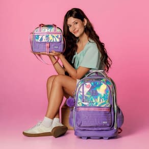 Um modelo exclusivo e cheio de estilo, a mochila de carrinho Rebecca Bonbon RB27016 é confeccionada em PVC holográfico com bordado de estrela, patches no painel frontal, etiqueta emborrachada e cadarços estampados, trazendo um design moderno e único. O compartimento principal é muito espaçoso e conta com divisória acolchoada para notebook e outra para tablet. Além disso, possui dois compartimentos frontais com fechamento por zíper, sendo um deles com divisórias internas, além de bolsos laterais telados duplos. Acompanha chaveiro triplo, incluindo um pompom com orelhinhas super charmoso, além de cartela de adesivos exclusivos da Rebecca Bonbon. Pode ser Utilizado como mochila de carrinho, com rodinhas resistentes, puxador de metal com duas alturas e trava, além de base de apoio frontal. Ou, se preferir, pode ser Utilizado nas costas, já que possui alças acolchoadas ajustáveis que ficam guardadas em compartimento traseiro fechado por zíper, junto com protetor de rodinhas para evitar sujeiras nas roupas. Conta ainda com alça de mão superior. Todos os puxadores de zíper são personalizados. Dimensões aproximadas: 48x35x19cm. Marca: Não Informado Ean: 7795028479565