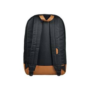 Mochila casual em poliéster possui compartimento externo, alça de mão e zíper com puxador.