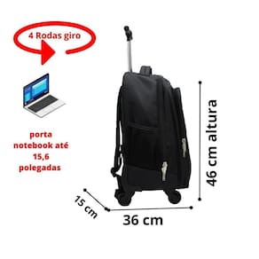 Mochila com carrinho executiva mala com 4 rodas e com giro 360º Cor: preto Tamanho: único Genero: unissex Mochila de carrinho com rodas 360º executiva em poliéster