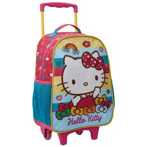 A mala com rodas Hello Kitty é uma fofura sem fim! Feita de poliéster resistente, com frente em PVC + glitter aplicado e puxador do zíper de metal personalizado em formato de coração. Possui um compartimento amplo, hastes com trava e rodinhas decoradas com glitter. As cores de sua composição combinam perfeitamente com a alegria e positividade da nossa gatinha favorita! Deixe que esta mala seja a sua companheira de aventuras!Detalhes EspeciaisPuxadores Personalizados: Em Metal pintado, os puxadores de zíper são personalizados com um design exclusivo, oferecendo um toque único à mochila.Bolsos Laterais: Perfeitos para armazenar garrafas de água, guarda-chuvas ou pequenos itens de acesso rápido.Técnica frontal: PVC + Glitter aplicado.Alça de mão: tira de poliéster forrado com nylon.Carrinho: O carrinho promove mais conforto e praticidade para o dia a dia dos pais e crianças. Feito de Metal pintado e hastes arredondadas, possui travas de altura, 2 rodas com glitter e freio frontal.Material:Poliéster 420DDIMENSÕES:- Largura: 30cm- Altura: 40cm- Comprimento: 15cmPESO: 800gr