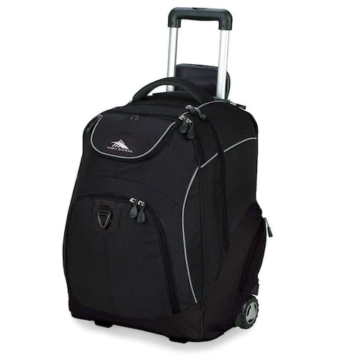 High Sierra Mochila com rodas Powerglide, Preto, Mochila com rodas Powerglide - Compartimentos principais grandes e vários bolsos permitem que você mantenha todos os seus equipamentos seguros e organizados. - Um compartimento para laptop com zona de amortecimento totalmente acolchoado acomoda a maioria dos modelos de 17 polegadas. Um bolso de mídia com porta de fone de ouvido mantém sua música à mão. - Vários bolsos, incluindo um bolso de malha com zíper, bolsos para canetas, bolso de mídia com tampa e gancho para chaveiro, são perfeitos para manter todos os seus itens menores seguros. - As alças da mochila são armazenadas atrás do painel traseiro com zíper. - As rodas estilo terreno são montadas nos cantos para estabilidade. Uma placa moldada oferece proteção extra contra abrasão. - Dimensões: 53 x 35 x 23 cm - A alça telescópica armazena perfeitamente sob a capa com zíper - Alças de mochila dobráveis com malha de ar + espuma: o conforto nunca foi tão legal - Este produto é destinado a pessoas a partir de 13 anos de idade