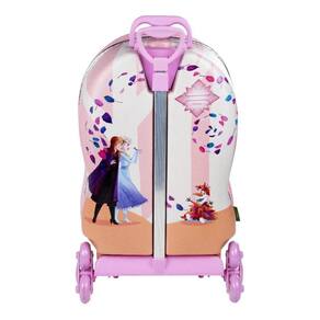 A Mochila 3D da Diplomata, é confeccionado em material de alta qualidade para garantir durabilidade e resistência durante seu uso. Muito divertida e com cores vibrantes, apresenta estampa que traz da Frozen Elsa e Anna. A mochila é fabricada com design em 3D, tornando-a muito mais moderna e estilosa, além de contar com proteção contra sujeira e superfície impermeável, ajudando a mantê-la com uma aparência sempre nova. Conta com rodinhas triplas especiais de PVC em ambos os lados, com sistema de rotação exclusiva para trajetos em escadas e calçadas, abertura principal por zíper, alça de mão, puxador regulável para maior facilidade no transporte e um amplo compartimento interno com divisão em tela para maior praticidade e estabilidade. Sua filha vai aproveitar o momento volta às aulas com muita diversão e praticidade.