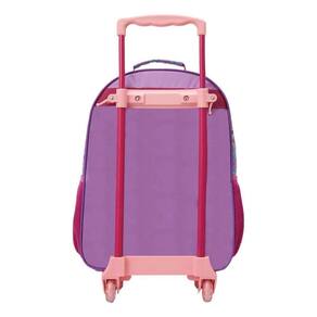 Diferenciais: - Conforto no Transporte: O carrinho com hastes ajustáveis e travas de altura facilita o transporte, reduzindo o peso nas costas das crianças. - Design Encantador: Técnica frontal em PVC com glitter, proporcionando brilho e um visual marcante. - Organização Prática: Bolsos laterais versáteis para garrafas e pequenos objetos. - Durabilidade: Feita com materiais resistentes, garantindo maior vida útil.
