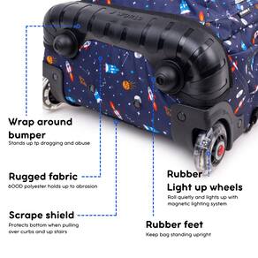 Este conjunto divertido e colorido inclui uma mochila com rodas e uma lancheira isolada e está disponível em padrões fofos para crianças. Funciona como uma bolsa com rodas para a escola e uma divertida mochila de mão para crianças de 3 a 9 anos. A bolsa de rodas Kids possui rodas macias e silenciosas com um sistema magnético de iluminação automática (as crianças vão adorar isso!) e tem um sistema de alça de travamento embutido de três estágios com um botão de liberação. Seu compartimento principal com zíper armazena facilmente os livros, pastas, projetos e jaqueta de seu filho, e um bolso organizador frontal contém um porta-chaves, um porta-lápis e um bolso de malha. Os bolsos laterais de malha contêm garrafas de água, e a mochila rolante J World Lollipop com lancheira tem alças de ombro acolchoadas com malha de ar e uma alça acolchoada. A bolsa também pode ser usada como bagagem de mão de viagem. Seu filho pode transportar essa bagagem de mão infantil com rodas pelo aeroporto com orgulho e você não precisa! Esta mochila de mão cabe embaixo de um assento de avião.