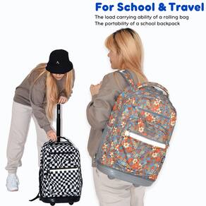 A inovadora e versátil mochila com rodinhas J World Sundance para escolas e viagens possui um compartimento para laptop de 15,6" e um molde de proteção inferior para garantir que seu dispositivo não seja danificado durante a viagem. A mochila para laptop com rodas Sundance pode ser utilizada como bagagem de mão ou como mochila para laptop com tiras que é fácil de transportar. Organize todos os seus pertences com um bolso frontal equipado com porta-lápis, chaveiro e bolso de malha, perfeito para guardar itens que podem ser facilmente acessados. Para quem precisa de hidratação em trânsito, tem bolsos laterais de malha que são ideais para guardar garrafas de água e vários outros recipientes para bebidas. Com enorme capacidade, esta mochila para laptop carrega facilmente um laptop, fichário de 3 polegadas, 3 livros didáticos universitários, cadernos, disco rígido portátil e almoço com espaço de sobra. A alça de alumínio de tubo único se estende até 34 ou 39 polegadas para facilitar a manobrabilidade de crianças e adultos de até 6 pés e 3 polegadas de altura.