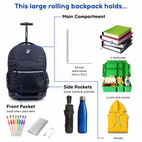 Viaje, volte para a escola ou durma na casa do pijama com estilo, com seus pertences bem guardados na mochila rolante J World Sunrise. A versatilidade da mochila com rodas Sunrise permite que ela funcione tanto como bagagem de mão rolante quanto como mochila com tiras para estudantes. Possui alça telescópica de alumínio leve, rodas macias e silenciosas e molde de proteção inferior para maior durabilidade. Organize todos os seus pertences com um bolso frontal equipado com porta-lápis, chaveiro e bolso de malha, perfeito para guardar itens que podem ser facilmente acessados. Para quem precisa de hidratação em trânsito, tem bolsos laterais de malha que são ideais para guardar garrafas de água e vários outros recipientes para bebidas.