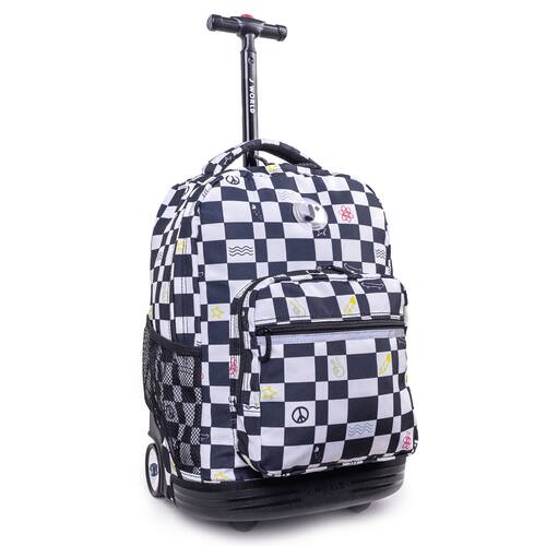 Viaje, volte para a escola ou durma na casa do pijama com estilo, com seus pertences bem guardados na mochila rolante J World Sunrise. A versatilidade da mochila com rodas Sunrise permite que ela funcione tanto como bagagem de mão rolante quanto como mochila com tiras para estudantes. Possui alça telescópica de alumínio leve, rodas macias e silenciosas e molde de proteção inferior para maior durabilidade. Organize todos os seus pertences com um bolso frontal equipado com porta-lápis, chaveiro e bolso de malha, perfeito para guardar itens que podem ser facilmente acessados. Para quem precisa de hidratação em trânsito, tem bolsos laterais de malha que são ideais para guardar garrafas de água e vários outros recipientes para bebidas.