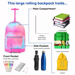 Viaje, volte para a escola ou durma na casa do pijama com estilo, com seus pertences bem guardados na mochila rolante J World Sunrise. A versatilidade da mochila com rodas Sunrise permite que ela funcione tanto como bagagem de mão rolante quanto como mochila com tiras para estudantes. Possui alça telescópica de alumínio leve, rodas macias e silenciosas e molde de proteção inferior para maior durabilidade. Organize todos os seus pertences com um bolso frontal equipado com porta-lápis, chaveiro e bolso de malha, perfeito para guardar itens que podem ser facilmente acessados. Para quem precisa de hidratação em trânsito, tem bolsos laterais de malha que são ideais para guardar garrafas de água e vários outros recipientes para bebidas.