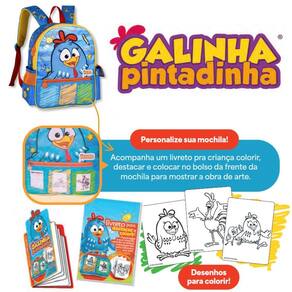 Kit com a Mochila de Costas e Lancheira Térmica: perfeito para a volta às aulas com a Galinha Pintadinha Mochila de Costas GP24626D: - Espaçoso compartimento principal: ideal para cadernos, livros e materiais escolares. - Bolso frontal com zíper: excelente para objetos de fácil acesso. - Bolsos laterais práticos: um bolso telado para garrafinhas e outro com tampa para itens adicionais. - Conforto no uso: alças de costas ajustáveis e acolchoadas, além de alça de mão superior. - Detalhes encantadores: confeccionada em cetim com patch de pelúcia e bordado da personagem. - Mochila personalizável: inclui um livreto para a criança colorir e personalizar, exibindo a obra no bolso frontal. Lancheira Térmica GP24627: - Compartimento único térmico e espaçoso: perfeito para manter os lanchinhos sempre frescos. - Três opções de transporte: alça de mão, alça de costas e alça carona para acoplar à mochila. Dimensões aproximadas: - Mochila de Costas: 33x27x12 cm - Lancheira: 23x20x11 cm Este kit encantador une organização e muita diversão, fazendo da Galinha Pintadinha a companheira ideal para a rotina escolar dos pequenos Marca: Não Informado