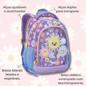 Mochila Costas Creche 13 Bebê Flores Lilás Escolar Infantil