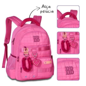 A Mochila Rebecca Bonbon RB26238 combina funcionalidade, conforto e um visual encantador que é a cara da marca. Possui compartimento principal amplo, com espaço acolchoado exclusivo para notebook e tablet, garantindo mais proteção no dia a dia escolar. Na parte frontal, conta com um compartimento espaçoso com divisórias internas que facilitam a organização, além de mais dois bolsos frontais com fechamento por zíper para objetos menores. O modelo ainda dispõe de bolsos telados nas laterais, bolso antifurto na parte traseira e alça carona, ideal para acoplar em malas de viagem. Confeccionada em material soft com acabamento em matelassê e placa de metal colorido, o grande charme da mochila fica por conta da alça de mão e dos chaveiros de pelúcia, que trazem um toque lúdico e exclusivo à peça. Dimensões aproximadas: 44x33x14cm. Marca: Não Informado