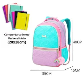 Feita com material resistente, a mochila oferece amplo espaço interno, além de compartimentos bem organizados para acomodar livros, cadernos, acessórios e itens pessoais. Suas alças acolchoadas garantem conforto e suporte, proporcionando uma experiência ergonômica e agradável. O design moderno e vibrante reflete a energia jovem, tornando este produto a escolha ideal para as adolescentes que desejam unir moda e funcionalidade.