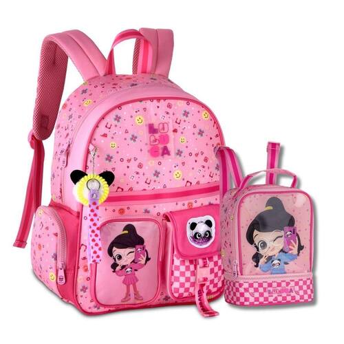 Encante as mini it girls com o kit perfeito para transformar a rotina escolar em uma experiência cheia de estilo e diversão A Mochila de Costas LU24615 é ideal para meninas que amam unir praticidade e charme. Com duas opções de cores incríveis - azul clarinho ou rosa -, oferece um compartimento principal espaçoso para livros e cadernos, dois bolsos frontais de fácil acesso e bolsos laterais para maior organização. O design lúdico ganha vida com os cards interativos que permitem vestir a personagem no bolso frontal, além do chaveiro charmoso com pompom e penduricalhos, um detalhe que faz toda a diferença. Suas alças acolchoadas ajustáveis e a alça superior de mão garantem conforto no transporte. Confeccionada em material soft com um patch brilhante do Pandalu, é simplesmente irresistível Dimensões aproximadas: 40x30x13 cm. A Lancheira Térmica LU24616 complementa o kit com toda a funcionalidade necessária. Com revestimento térmico, possui dois compartimentos que ajudam a separar e organizar os alimentos, mantendo-os frescos e protegidos. Oferece três formas de uso: alça de costas ajustável, alça de mão e alça carona para acoplar no puxador de uma mochila com carrinho. Seu design traz a personagem Luluca em alto relevo, confeccionada em poliéster resistente, com um visual encantador. Dimensões aproximadas: 24x17x10 cm. Este kit une qualidade, funcionalidade e um toque lúdico para tornar o dia escolar muito mais especial Marca: Não Informado