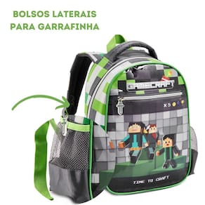 A estampa do Gamecrafat na mochila é cativante, trazendo à vida os personagens e elementos icônicos do jogo. As alças são ajustáveis e acolchoadas, proporcionando conforto e segurança enquanto as crianças a carregam.