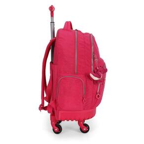 Material: 100% poliéster Forro: 100% poliéster Categoria: Escolar Compartimentos: 4 compartimentos frontais, 2 bolsos laterais e um compartimento para notebook Fechamento em zíper Chaveiro dino de pelúcia Cor: Rosa Medidas aproximadas: L x A x P 36cm X 63cm X 23cm