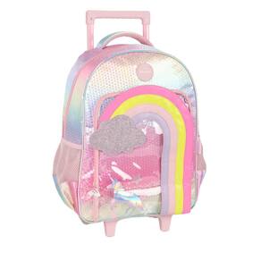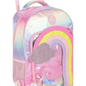 Contém: 01 un - mochila de rodinhas unicórnio arco iris rosa - luxcel