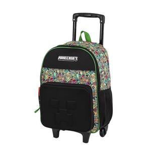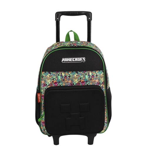 Ligue o modo criativo e explore a rotina de estudos com a mochila de rodinhas Funtage do Minecraft O tecido é coberto por um mosaico com os elementos do jogo que é o maior sucesso entre os jovens e crianças. Espaçosa, conta com um compartimento, bolsos laterais em elástico para garrafinha, e um bolso frontal com a face de Creeper em 3D Enquanto isso, o carrinho de rodinhas permite que o seu pequeno aventureiro desbrave o dia a dia na escola da melhor forma