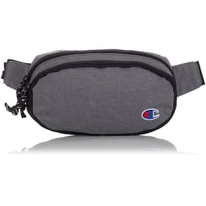 Champion Pochete Signal, Cinza/preto - Alça ajustável - Clipe de liberação - Bolsos duplos com zíper - Bordado de marca