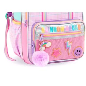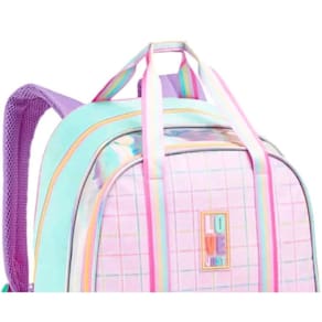 Mochila de Costa Feminina Rainbow Love Just Escolar Medidas: 43 x 30 x 14 cm Composição: 100% Poliéster Alça de mão Puxador personalizado Duas divisórias Chaveiro pompom Suporte para garrafas nas laterais Ean: 7899310518670