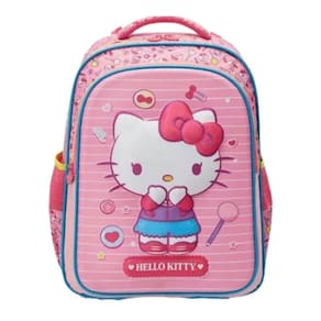 Ideal para crianças que amam aventuras, esta mochila apresenta um design encantador com a adorável Hello Kitty em alto relevo. Com um fundo rosa candy colors, detalhes coloridos e práticos bolsos laterais de mesh, é perfeita para viagens, passeios e aulas. Possui dois compartimentos. Leve, funcional e cheia de estilo, esta mala fará qualquer criança passear com um sorriso no rosto!