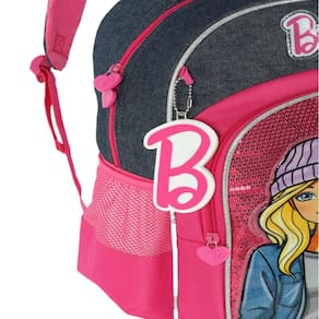 Mochila Escolar de Costas Barbie   A Mochila de Costas da Barbie Luxcel é perfeita para transportar material escolar ou para uso diário. Com um design moderno e funcional, essa mochila possui amplo espaço interno, permitindo que você carregue tudo o que precisa de forma organizada e prática. Essa mochila possui um compartimento principal grande, com espaço de sobra para seus livros, cadernos e demais itens, um bolso frontal e além disso, conta com dois bolsos laterais para garrafa, ou outros objetos pequenos. Os puxadores do zíper são personalizados, adicionando um toque especial ao produto, além disso, a mochila possui uma alça de mão e alça de costas almofadadas. Fabricada em poliéster, essa mochila é resistente e durável.   Características da Mochila Escolar: - 1 Bolso Principal com bastante espaço - 1 Bolso Frontal - 2 Bolsos laterais para squeeze - Estampa em alto relevo - Alças de costas acolchoadas e ajustáveis - Alça de mão reforçada na parte superior - Puxadores personalizados - Taggy identificação - Chaveiro Barbie personalizado - Material: 100% Poliéster   Dimensões Aproximadas: - Altura: 40 cm - Largura: 29 cm - Profundidade: 14 cm