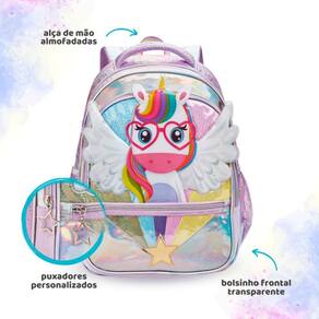 Mochila De Costas Escolar Infantil Estampado Unicórnio Wings Cor: Roxo Encante-se com a Mochila Escolar Infantil Unicórnio Wings, perfeita para adicionar magia ao dia a dia das crianças. Com design exclusivo e estampa vibrante de unicórnios, essa mochila combina estilo e funcionalidade. Ideal para a rotina escolar, oferece amplo espaço interno, alças ajustáveis e acabamento resistente. Um toque de fantasia para acompanhar os pequenos em todas as aventuras
