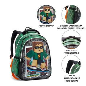 Mochila De Costas Escolar Infantil Gamecraft SkateBoy Cor: Preto A Mochila de Costas Escolar Infantil Gamecraft SkateBoy combina estilo moderno e funcionalidade para o dia a dia escolar. Inspirada no universo pixelado, apresenta design vibrante e compartimentos espaçosos para organização prática de materiais. Confeccionada com materiais resistentes, alças ajustáveis e reforçadas, oferece conforto e durabilidade, sendo a escolha perfeita para crianças que desejam transportar seus itens com personalidade e segurança.