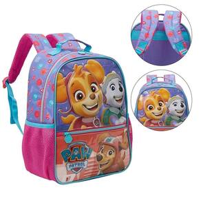 Características; Ocasião: Escolar, dia a dia, passeio Alça de mão reforçada Alça de costas reforçada acolchoada 1 Compartimento 1 Bolso frontal Apenas no modelo feminino 2 Bolsos laterais para garrafa Estampa Paw Patrol unissex Produto oficial licenciado Nickelodeon