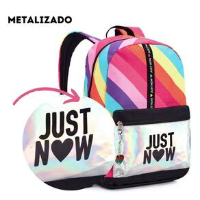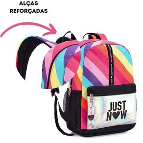 Com um design moderno e descontraído, essa mochila apresenta uma variedade de cores vivas e chamativas, tornando-a uma escolha fashion para as jovens estudantes que desejam se destacar com um acessório único.