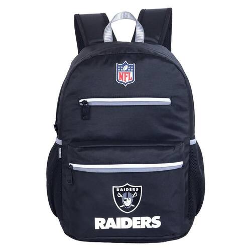 Características; Ocasião: Escolar, dia a dia, passeio Alça de mão Alça de costas reforçada acolchoada 1 Compartimento Divisória interna para Notebook 2 Bolsos frontais 2 Bolsos laterais para as costas Estampa NFL Raiders Produto oficial licenciado Raiders