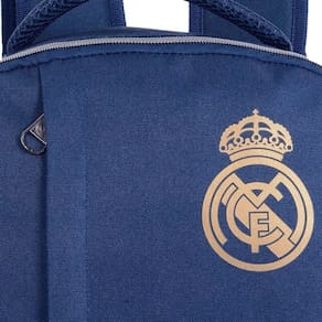 - Material: Poliéster 900D + Ripstop. - Cor: Azul-marinho com detalhes do Real Madrid.