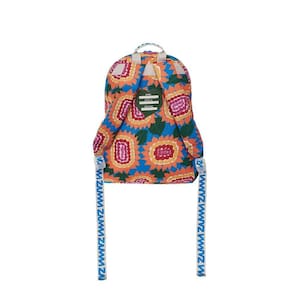 Mochila de costas, bolsos laterias em tela com elástico, silk frontal, bolso frontal com zíper, alça de mão e etiquetas personalizadas.