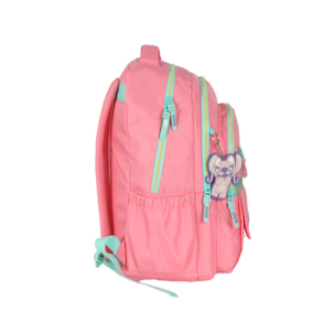 Leve a Ohana com Delicadeza! Mochila de Costas G do Stitch ROSA SALMÃO: Conforto, Estilo e Fofura! Para os fãs do Stitch que preferem o modelo de alças, esta Mochila de Costas Oficial da Disney é a opção perfeita! O design é suave em Rosa Salmão (Rosa Claro), com detalhes em Azul Turquesa e estampa o tema "Ohana Quer Dizer Família". A mochila oferece o máximo de conforto com as alças de ombro acolchoadas e ajustáveis. É ampla, com compartimentos pensados para a organização do material escolar. O toque especial fica por conta do chaveiro da Angel (Pink) e a alça decorativa de correntes.