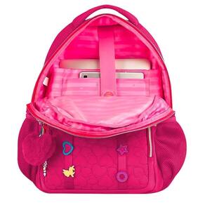 Características; Ocasião: Escolar, dia a dia, passeio Alça de mão acolchoada Alça de costas reforçada acolchoada 2 Compartimentos Compartimento interno para Notebook Bolsos internos 1 Bolso frontal 2 Bolsos laterais para garrafa Bolso escondido nas costas da mochila Acompanha chaveiro personalizado