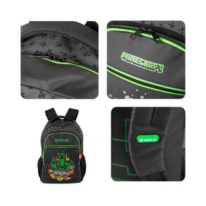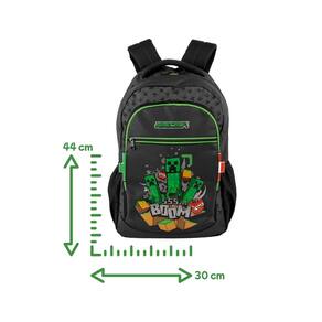 Características Mochila: - Estampa oficial Minecraft - Alça de mão acolchoada - Alças de costas acolchoadas e ajustáveis - Bolsos Laterais p/garrafinhas