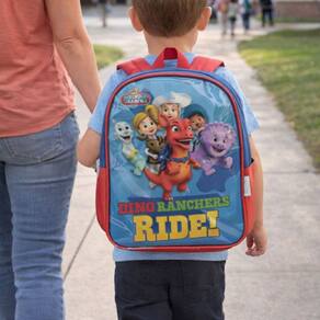1 Bolso Principal e 2 Laterais para garrafinhas; Mochila de Costas com Alça Resistente Estampa Personalizada do Dino Ranch;