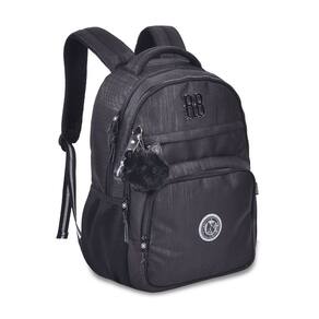 Características - Alça de mão - Alça carona - Bolsos laterais - Chaveiros personalizados - Cadarço listrado com brilho - Etiqueta de borracha com glitter - Puxador com cadarços - Zíper tratorado
