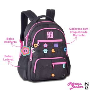 Características Mochila: - Alça de mão - Alça de costas acolchoada e Ajustável - Bolso antifurto - Bolsos Laterais - Confeccionados em Soft - Chaveiros de borracha e mascote 3D - Logo RB em metal colorido - Forro rossa listrado - Compartimento de Laptop + Tablet