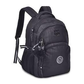 Características: - Alça de mão - Alça Carona - Etiqueta de borracha com glitter - Cadarço listrado com brilho - Bolso antifurto - Chaveiro personalizado - Puxador com cadarços - Zíper tratorado