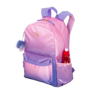 As cores rosa e lilás se destacam nessa linda mochila da Capricho, com uma textura em paetê que dá um brilho especial e vai fazer você se destacar! Ela tem alças espumadas e ajustáveis à sua altura, além de amplo espaço interno e um bolso frontal com fechamento em zíper. Ah, repara só no pingente que vem junto. É um charme!