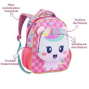 Características Mochila : - Estampa encantadora de unicórnio - Tamanho ideal para passeios e uso diário - Alças acolchoadas e ajustáveis para mais conforto - Compartimento com zíper Personalizado e espaço para itens essenciais - Material leve, resistente e fácil de limpar - Detalhe em 3D - Orelhas em Pelúcia - Bolso Lateral Para Garrafinha - Identificador no Verso