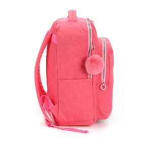 Material: 100% poliéster Forro: 100% poliéster Categoria: Escolar Compartimentos: 2 compartimentos frontais e 1 bolso lateral Fechamento em zíper Chaveiro de pompom Cor: Rosa salmão Medidas aproximadas: 33L x 43A x 23P