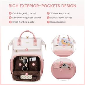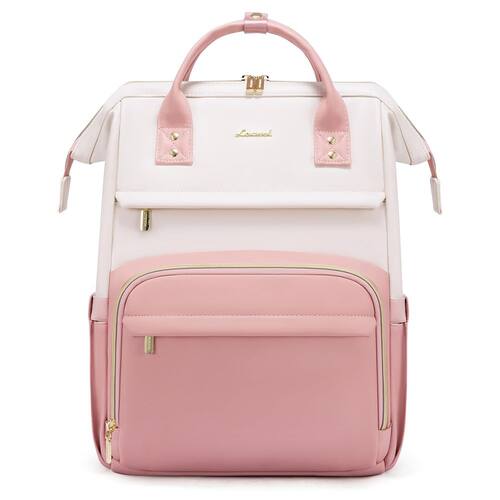 LOVEVOOK Mochila para laptop, Bege branco - rosa, Moderno - 💯?High Quality & Large Capacity?: LOVEVOOK leather laptop backpack for women is made of high quality waterproof PU leather, the no-slip gold zippers are a nice touch, the stitches are tight and very durable. CLASSY, FUNCTIONAL, ROOMY. Dimensions: 12.5”L 17.5”H 8”D, Weight: 2.82 lbs. Total of 2 compartments and 19 pockets for your computer,binders,notebooks,water bottles,work necessities,college supplies and travel essentials. - 💻?Padded Computer Backpack & Laptop Bag?: This leather backpack for women is padded on all sides and bottom,the padding for the laptop is thick. come with a elastic strap, which can provide good physical protection to your laptop and iPad. Great idea for someone with multiple electronic devices. - 🎒?Wide Open Teacher Bag & College Backpack?: The brown interior lining makes it seem so luxurious. Reinforced edges and steel frame of the main compartment keep the perfect shape of the bag and durable of usage. Wide Open Design, rectangular opening makes it incredibly convenient and easy access to the items at the bottom. - 💪?Professional Work Backpack & Travel Carry-on Bag?: Perfect work bag. There are so many compartments really great for work use. The padded straps are comfortable. The luggage strap allows the backpack fit on luggage/suitcase for easier carrying. Back hidden anti theft Edição de Bolso to store phone, ID, and cards Makes it easy to access and quickly store. Womens backpack for traveling on airplane, Fits great under airline seats. - ??Practical Gifts & Quality Warranty?: This LOVEVOOK leather laptop bag for women has been well made for work, business, travel, commuting, college, teacher, nurse, daily use. Practical gifts for all people you care about. We LOVEVOOK backpack provide a 12-hour customer service, 90-day no-reason return and 1-year warranty policy.