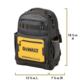 Mochila de ferramentas DEWALT, armazenamento e organização de ferramentas, durável e resistente à água (DWST560102) - SUPORTA CONDIÇÕES DIFÍCEIS - Ajuda a proteger objetos de valor com um compartimento IP54 resistente à água e uma base à prova d'água. - CONSTRUÍDO COM MATERIAIS DURÁVEIS — Enfrente canteiros de trabalho difíceis com tecido durável de 1680 denier e lona repelente de sujeira. - OTIMIZE A ORGANIZAÇÃO - Organize as ferramentas com 43 bolsos, incluindo um compartimento separado para sua furadeira e baterias. - PROTEÇÃO PARA LAPTOP — Ajude a evitar danos a dispositivos eletrônicos em locais de trabalho difíceis com compartimento separado para laptop. - ARMAZENAMENTO DE FERRAMENTAS DE GRANDES DIMENSÕES — Mantenha os itens em ordem com um bolso específico para garrafas e uma seção exclusiva para ferramentas longas.