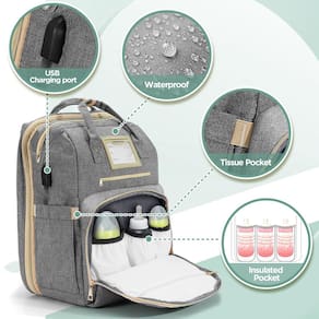 1 - ?Mochila para fraldas?Se você quiser uma mochila com zíperes sedosos, alças fáceis de carregar, fácil de limpar e grande capacidade, não hesite em nos escolher. E você receberá uma mochila atualizada para fraldas - ?Presente para pesquisa de registro? Incrível! Adicionamos recursos mais amigáveis para você, como pano de sombra, alça mais larga, etc. A porta USB é um ótimo complemento - ?Presentes para chá de bebê?Bom tamanho. A bolsa de fraldas tem 2 compartimentos principais e 12 bolsos úteis. Especialmente os 3 bolsos isolados atualizados. É feita de material impermeável de alta qualidade. Não se preocupe em molhar em dias chuvosos - ?Costas ergonômicas para mamãe papai?As costas ergonômicas e as alças de ombro grossas o tornam confortável de usar por um longo tempo. As alças são facilmente ajustáveis, cabendo em armações mais largas também. Tem fricção e não desliza facilmente - ?Ideias de presente?Perfeita para usar como bolsa de fraldas, mochila para mãe, bolsa de enfermeira. Design elegante e unissex para os pais. Ideias de presente, é essencial para recém-nascidos para mamãe papai/pais/gravidez