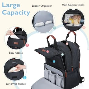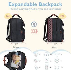 mommore mochila expansível para fraldas - Mochila expansível para fraldas - o zíper de expansão traseira torna mais flexível para transformar de uma mochila normal de fraldas de bebê de 26L em uma bolsa grande de fraldas de 32 L para 2 crianças/gêmeos, e se adapta facilmente a diferentes necessidades de transporte - Bolsa de bebê com vários bolsos - 2 compartimentos grandes com zíper para itens essenciais do dia a dia do bebê. A seção frontal de 1 bolso úmido e seco e 3 bolsos isolados para garrafa (serve para 142 a 312 g) para fácil acesso. Além de um orifício lateral para carregamento conveniente - Durável e confortável - Feita de tecido de poliéster Oxford resistente à água, forro interno fácil de limpar e zíperes fortes, é uma mochila resistente para fraldas de bebê para uso diário. Costura reforçada e alças acolchoadas de ombro/alça liberam seu ombro, conforto para carregar - Design de mãos livres: não só pode ser transportada sobre o ombro ou pela alça de fácil aderência. Os clipes para carrinho ajudam você a pendurar a bolsa no carrinho para relaxar, e há uma alça de bagagem na parte de trás da mochila para viagens sem usar as mãos, caminhadas diárias ou piqueniques ao ar livre. Mochila ideal para fraldas ou viagem ou trabalho para os pais - Bolsa de presente elegante para bebês - apresenta detalhes de acabamento de couro para adicionar um toque estruturado. As bolsas de fraldas são um presente muito prático e atencioso para novas mães e pais, um presente de banho ideal para registros de recém-nascidos